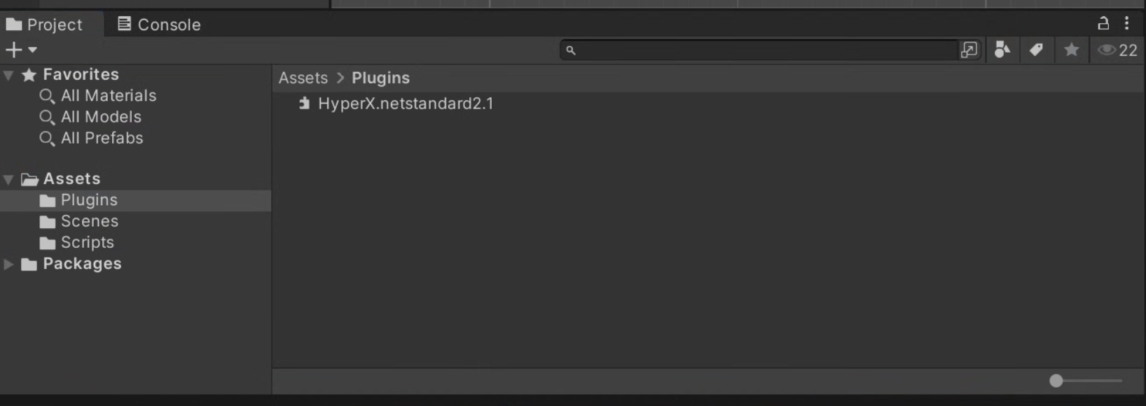 다운로드 받은 dll 파일을 유니티 프로젝트의 Plugins 폴더에 넣어주세요.